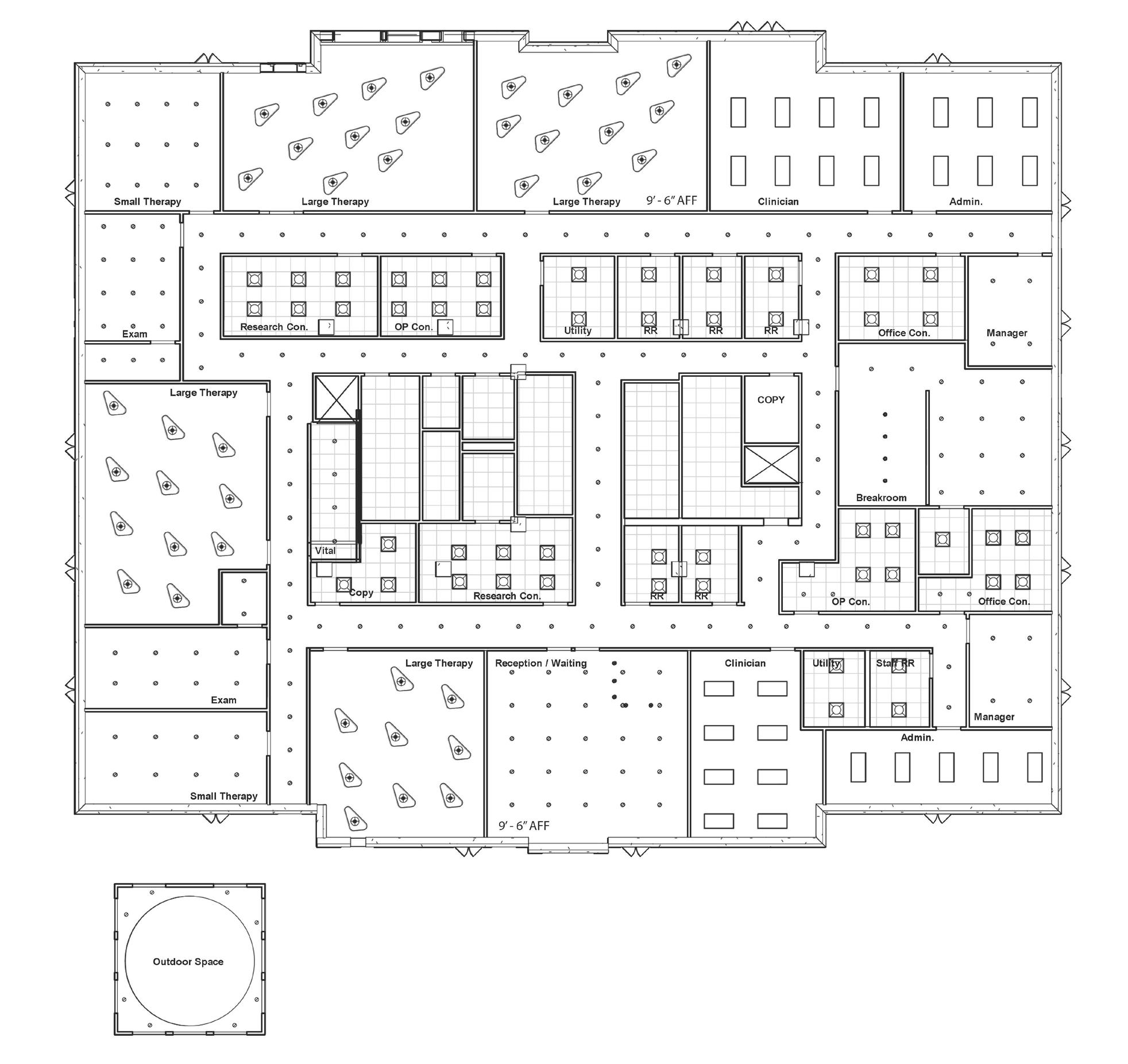Students were placed in groups of 2 & asked to design a behavioral health clinic in Cleveland, Ohio. The clinic is an outpatient facility that treats substance abuse & mood or anxiety disorders. The objective was to create a safe environment for patients that accommodates for mental health needs.