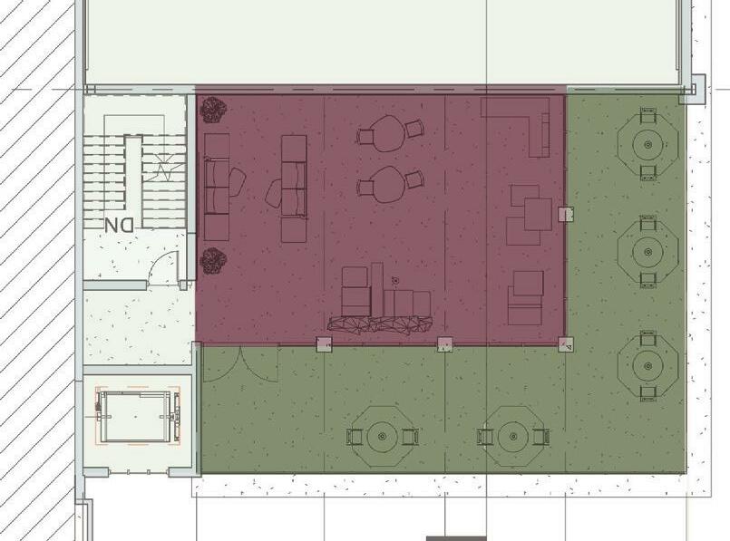 Private lounges face St. Charles for an exclusive view during parade season. The exterior of these lounges are designed to look like a shotgun house for privacy & contribution to the rooftop’s concept.