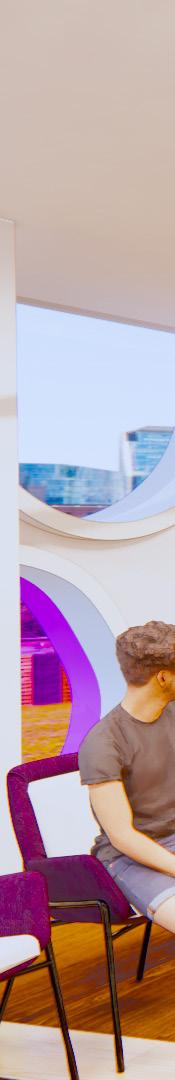 Organic window shapes contribute to the fluid forms seen around the clinic. Some windows are tinted purple, however some are left untreated to incorporate clear natural views, which are known to comfort mental health patients during therapy.