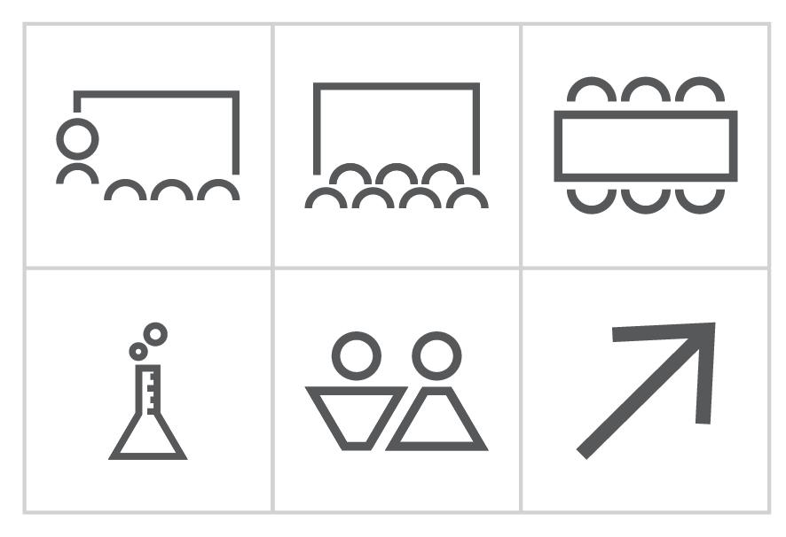 The icons of the building are made specifically for each room (classrooms, auditoriums, conference rooms, labs, unisex restrooms, stairs)