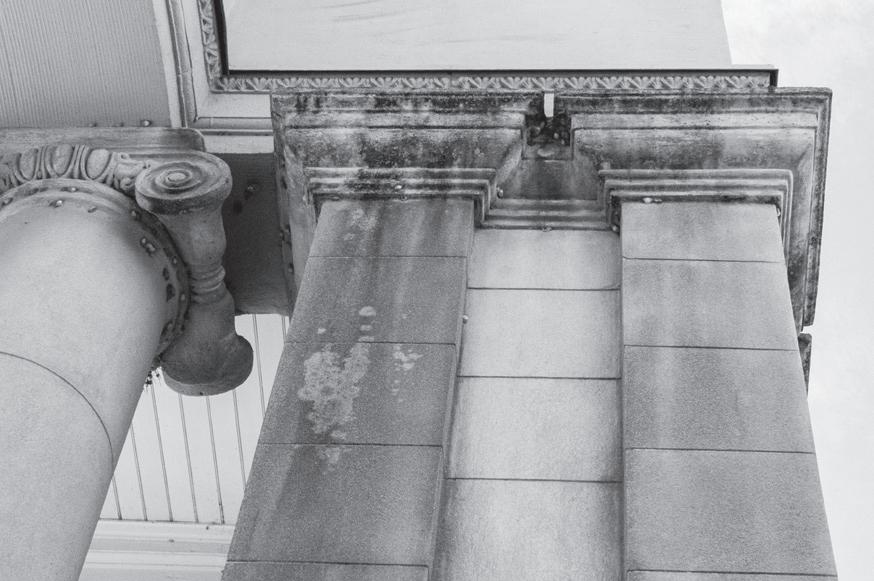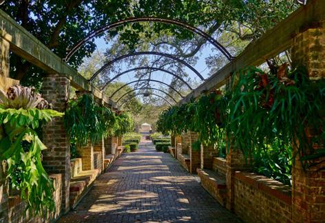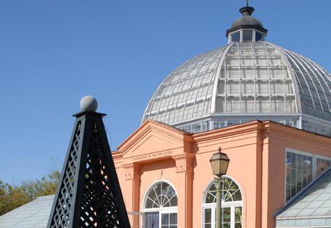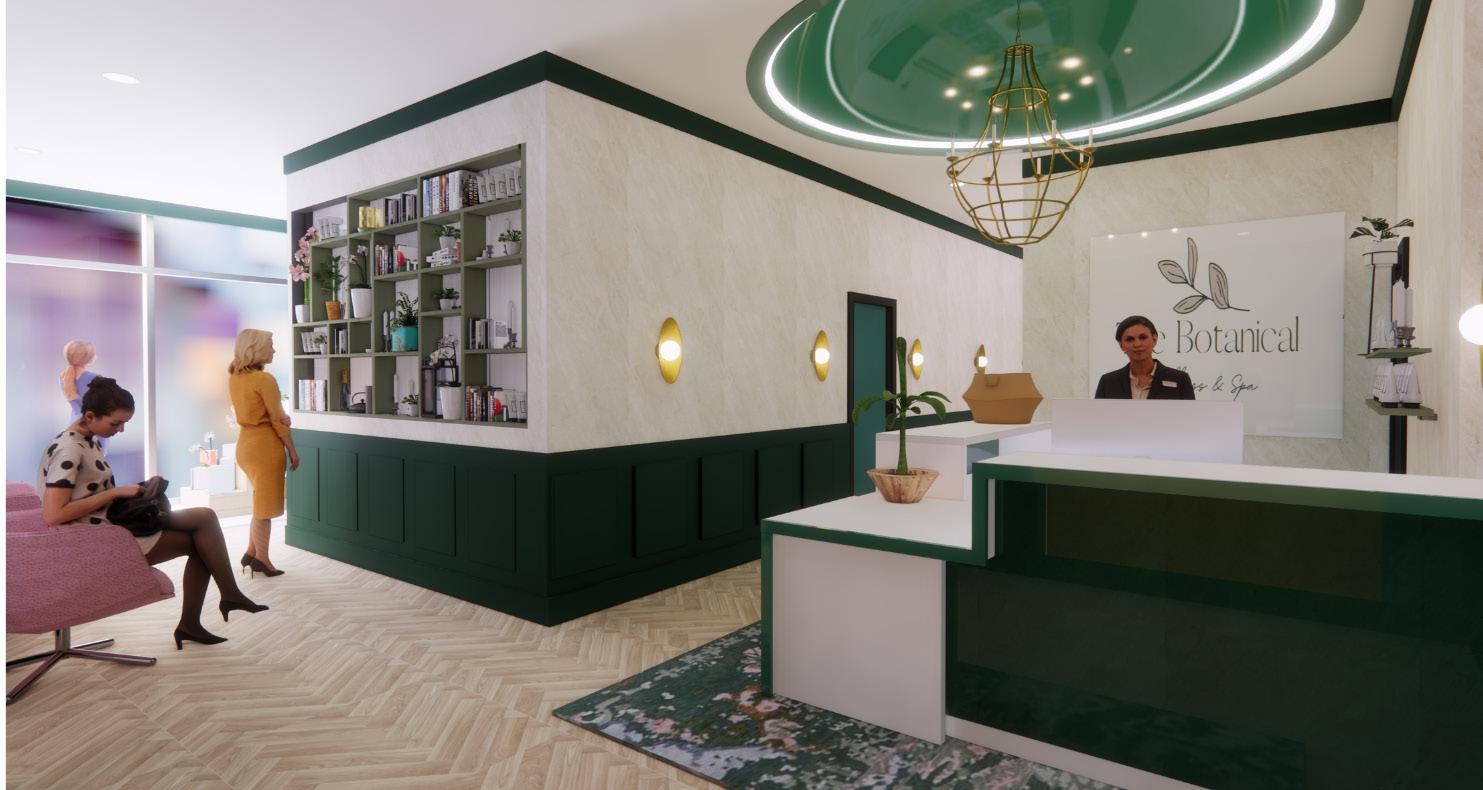 The dome ceiling in reception & pediments in the spa replicate architectural elements from the Botanical Gardens in City Park.