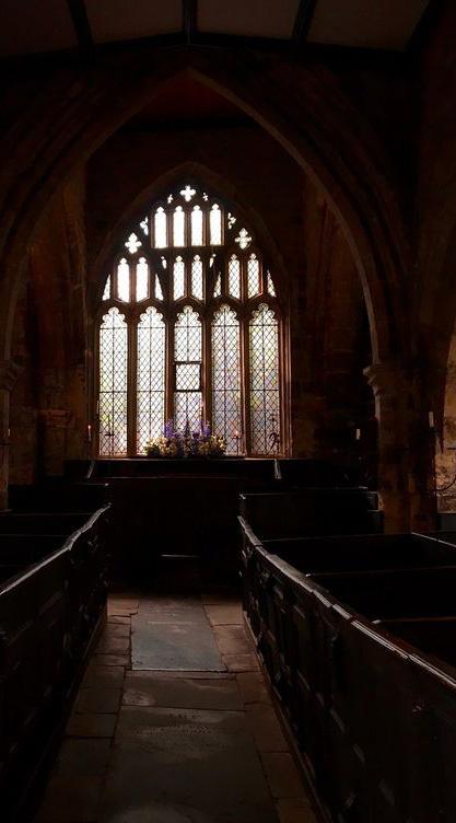 Material selection combines wood tones with warm tones. Red is a common color used in catholic churches, & wood pews line every cathedral. The chevron patterned flooring is complimented by the pattern of the chairs, adding texture to the space.