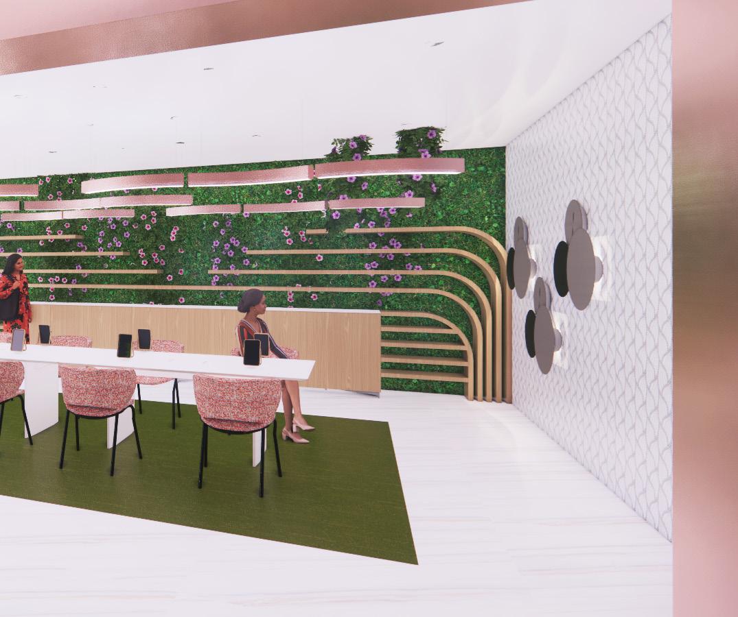Flower crowns are a symbol of beauty, & elegance. Raw, natural beauty makes you feel like royalty. Natural elements are incorporated with the use of living walls, lighting hung with plants & natural materials such as wood & bamboo. Soft features and curved lines indicate a sense of fluidity & freedom within the design. This use of form brings a luxurious, residential atmosphere to the office, making the office feel more like home than an office.