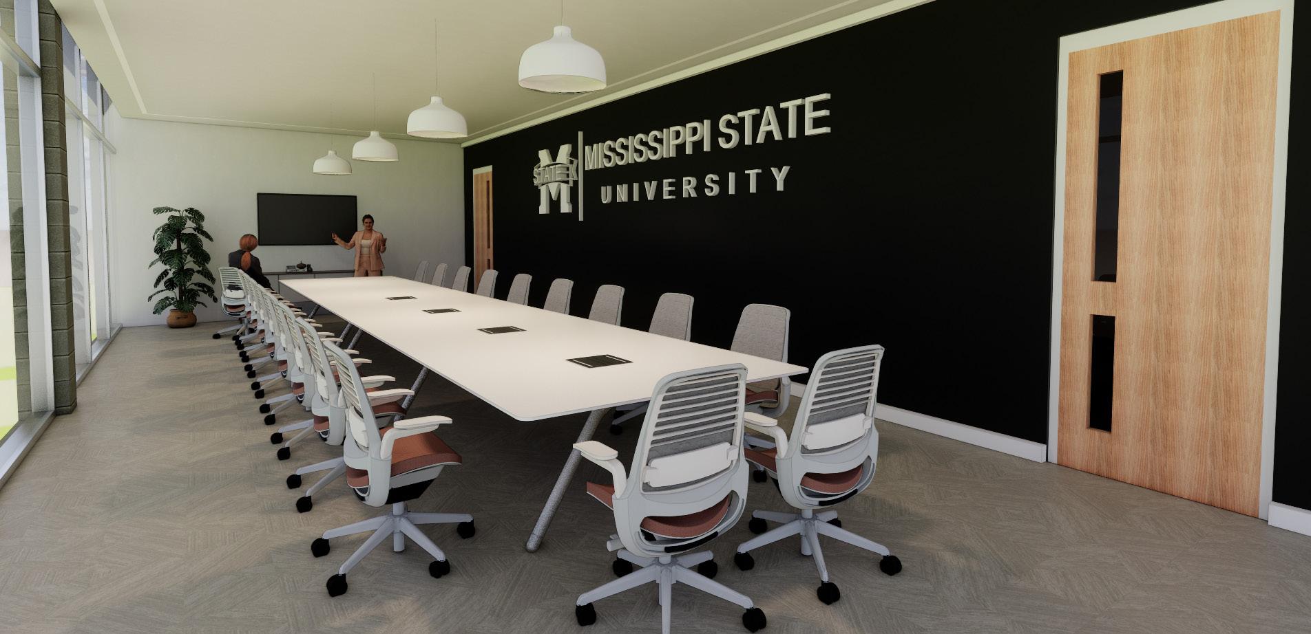 Our primary goal for the renovation of The Hand Chemical was to incorporate similar architectural & interior features to design styles seen at Mississippi State. Buildings on campus are mostly federal style, with maroon, black, white & grey incorporated in the interiors. Much of the concept for this project centered around blending our design into the culture that is already embedded into the university’s campus.