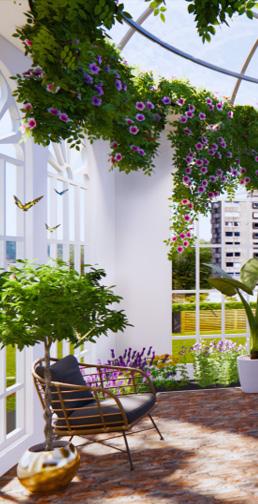 Biophilic design & floral wallpapers reflect natural elements of the garden, adding a sense of tranquility.