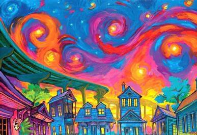 Unhinged is designed after paintings from a local artist, Terrance Osborne, who’s paintings replicate the city’s architecture with overly saturated that depict an alternate reality of New Orleans. Unhinged Rooftop Bar replicates Osborne’s distorted, alternate view of the city by utilizing using bright colors, neon lighting, & jagged lines.