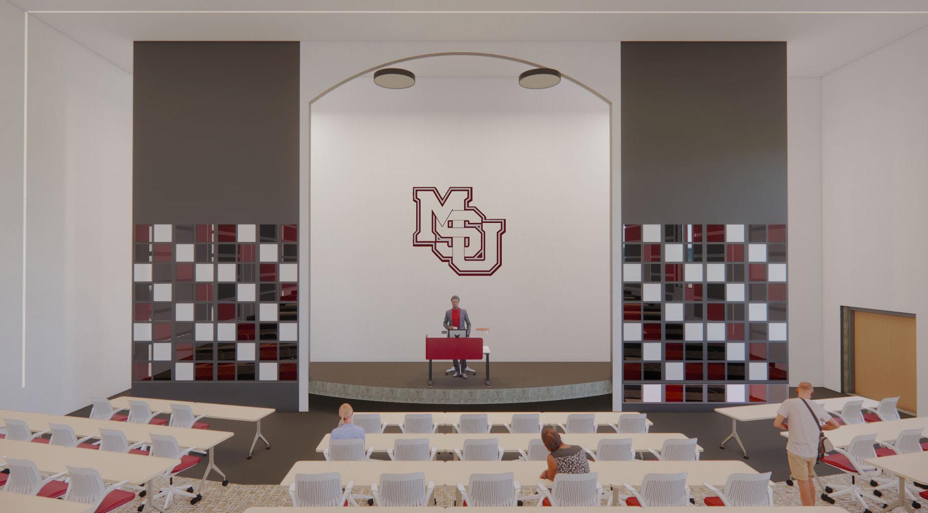 MSU teams were tasked with redesigning the existing Hand Chemical Lab auditorium to accommodate 300 seats & propose an addition to housing new faculty offices, classrooms and a conference room. Senior level students in architecture, interior design, graphic design, & building construction science were paired in groups over a two week period for the completion of this project.