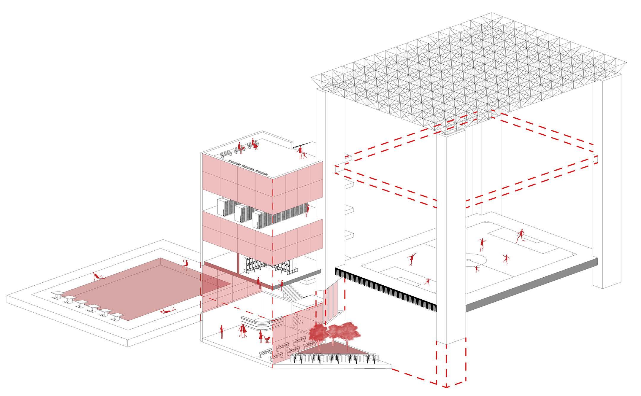 El proyecto se desarrolló en el ciclo 2021-1, pensando en el uso de la infraestructura muerta de un Data Center. El taller se centró en reactivar este tipo de arquitectura, haciéndolo un edificio público que combinara el programa estático y muerto de los cuartos de servidores con el de un centro social que permitiera a la gente aprovechar esta infraestructura.