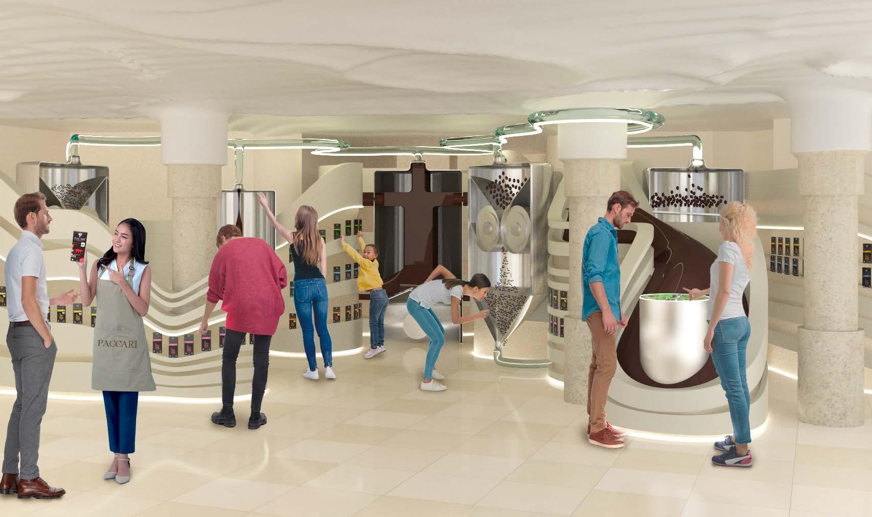 El proyecto fue parte de un concurso interno para el desarrollo interior de la nueva sucursal de la chocolatería PACCARI, en el primer y segundo nivel de La Pedrera (Casa Milà), en Barcelona.