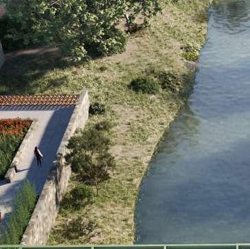 SE UTILIZARA COMO OTRA RUTA DE DESEMBOQUE AL LAGO, EL ÁREA DONDE ANTERIORMENTE SE UBICABA ELRIO CANALIZACIÓN POR MEDIO DE DIQUES DE GAVIONES A LA ORILLA DE AMBOS RIOS USO DE ARQUITECTURA ANFIBBIA EN LAS ZONAS CON MAYOR RIESGO