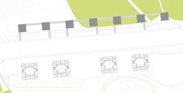 La propuesta además de articular las dos partes de la ciudad, también busca unificar las dos parte del parque que se encuentran separadas por el puente vehicular de conexión Partiendo de una ordenación del lugar de implantación con la implementación de una malla reguladora espacial, mediante la que se ordena y consolida el proyecto, que finalmente desemboca en una tipología de Torre plataforma.
