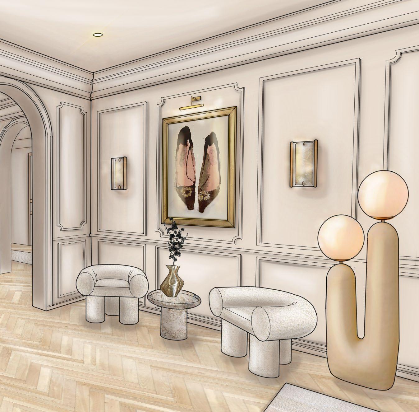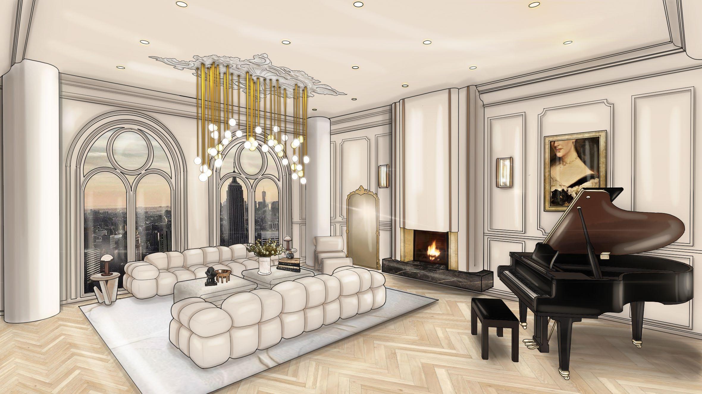 Blanche is a penthouse perched at the top of the Upper East Side of New York City. The interior style is detailed with refined elegance and sophistication. The surrounding area is associated with old-money charm, which is reflected throughout this interior. The design of Blanche seamlessly marries traditional architectural elements with modern furnishings, creating a space that exudes timeless luxury and brings harmony and visual interest into each intimate space.