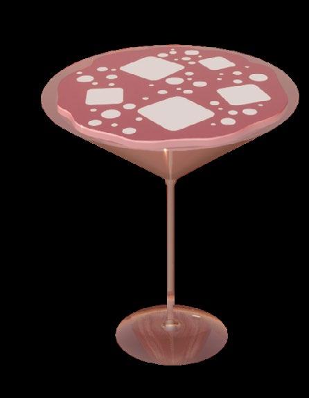 reminiscent of cowgirl attire accessories such as belt buckles and spurs. All of these design elements work in harmony to create a cohesive space and immersive experience. This design approach ensures that every element, from the furniture to the decorative objects, contributes to the overall theme and enhances the bar’s brand identity. The fusion of custom-crafted furniture pieces, thoughtfully chosen materials, and thematic objects creates an engaging and memorable space. The design is intended to captivate guests and invite them to experience the playful and sophisticated atmosphere that Oranges and Outlaws has to offer.