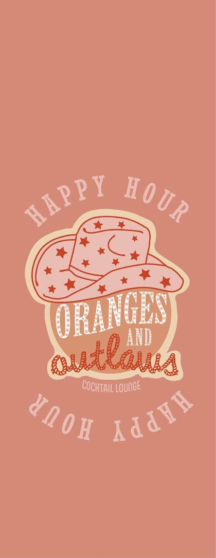casual, fun-loving, and inviting. Resonating with the laid-back atmosphere of a cocktail bar, Oranges and Outlaws incorporates playful references to both Southern charm and fruity concoctions. Messaging is crafted to evoke a sense of adventure, encouraging individuals to let loose and enjoy this unique blend of visuals.