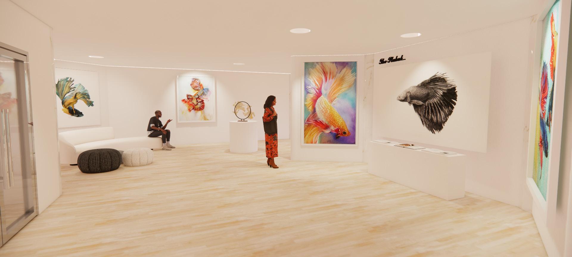 On the hotel’s second floor, guest suites prioritize ADA compliance and design adaptability. Guests can choose between two suite options: one featuring a king bed and the other offering two queen beds. Additionally, the second floor houses an Art Gallery aimed at showcasing local artists and providing an interactive space for guests. The gallery’s theme aligns with the overarching concept of the project, drawing inspiration from the Siamese Fighting Fish.