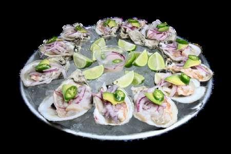 Ostiones Aguachiles: rojos o verdes 1⁄2 Dz.......................$24.99