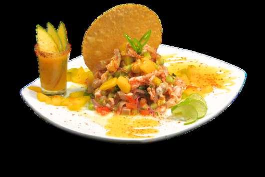 Tostada de Tropical...............................................$19.99 (TEMPORADA) che de Camaron bañado en salsa de mango, piña y mango fresco Agrega aguacate por 0.
