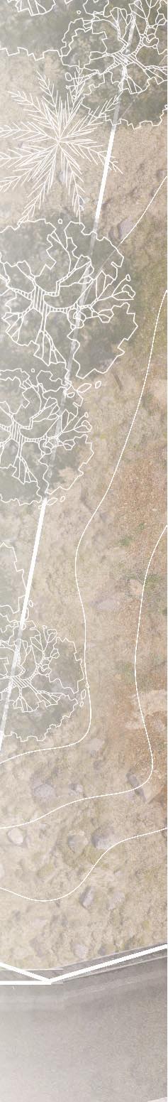 When first visiting Bartram’s North, I was struck by the different environmental conditions of the site. The narrowness of the area along the path, the juxtaposition between the clearings and dense forest, and the few viewpoints between the trees looking out past the river. In my design, I wanted to amplify the clearing between the barge and the monument site. My two structures emulate the enclosure already found within the site while providing visualanchors along the path.