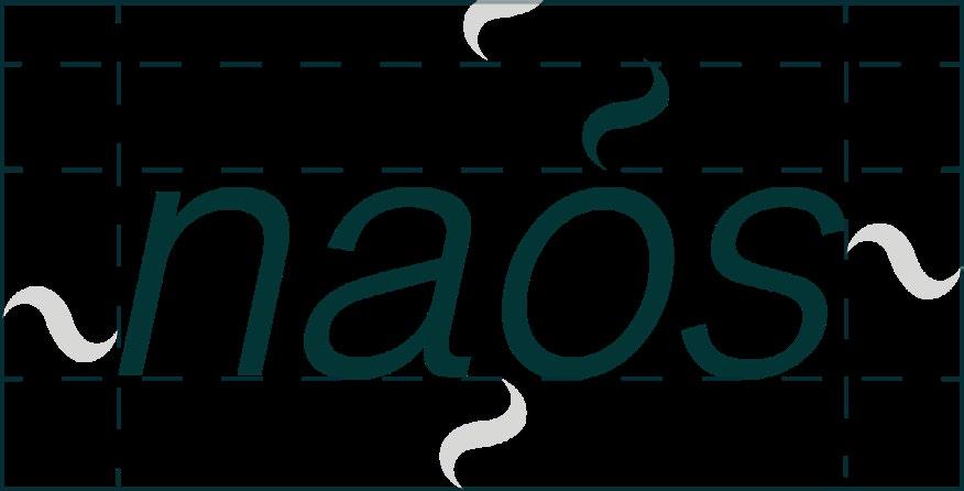 The pictorial above the “o” in “Naós” serves as both an accent mark and a symbolic flame, representing a spiritual aspect as well as a literal torch to accompany the image of a temple.