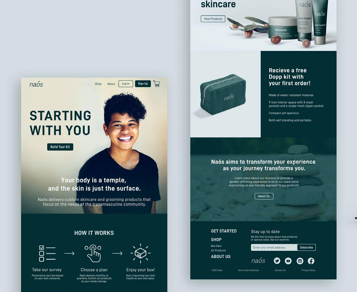 Naós is a predominantly subscriptionbased company in the men’s skincare and grooming industry. Naós primarily focuses on the needs transmasculine community in delivering high-quality, customized boxes that target common skin concerns that are caused by hormone replacement therapy (HRT).