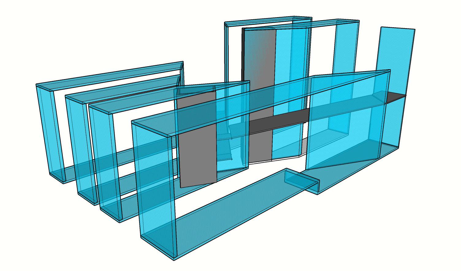 La ley de formación de la bipartición armónica se genera por la alternancia de rombos y cuadrados que se interiorizan sucesivamente, y cuya proyección lineal forma la malla de construcción binaria correspondiente
