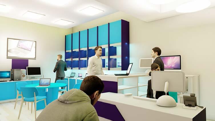 •Área de Venta: Un espacio diseñado para exhibir una amplia variedad de computadoras, desde equipos de escritorio hasta portátiles, permitiendo a los clientes explorar y comparar diferentes modelos.
