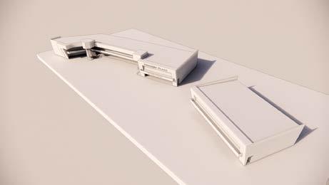 • Implantación en L: Dos volúmenes de igual altura se desfasan sobre la esquina, creando una arista abierta que permite una continuidad visual y física con las áreas verdes adyacentes.
