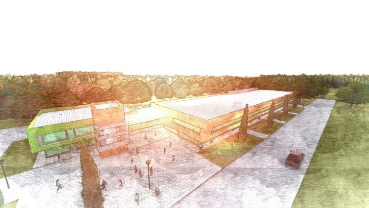 2. Aprovechar la ubicación estratégica del centro cultural en una esquina para crear un espacio público acogedor, un acceso peatonal destacado y una expansión visual y física de los locales comerciales.