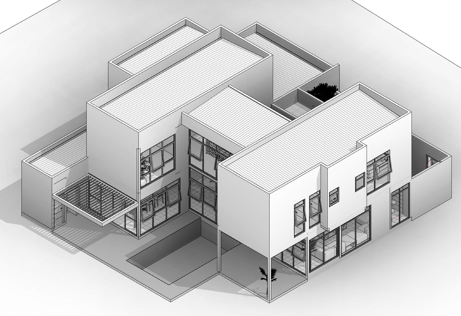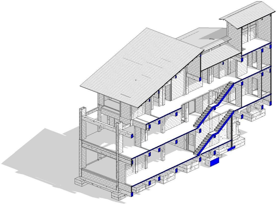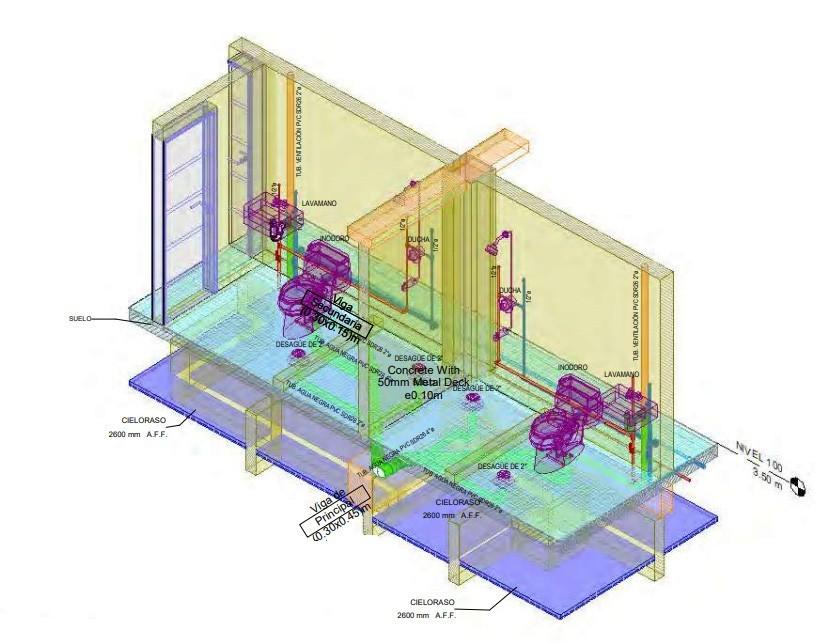 El proyecto se realizó con la metodología BIM en los programas Revit y Naviswork. Tiene como objetivo obtener un metrado para obra con una fialidad del 95%, y poder generar entregables de alta calidad que permitan reducir los conflic- tos de especialidades en obra. Se modelaron 3 especialida- des: Estructura, Arquitectura y Plomería. Sobre el modelo de coordinación se realizarán comprobaciones de interferencias entre los elementos de los distintos modelos.