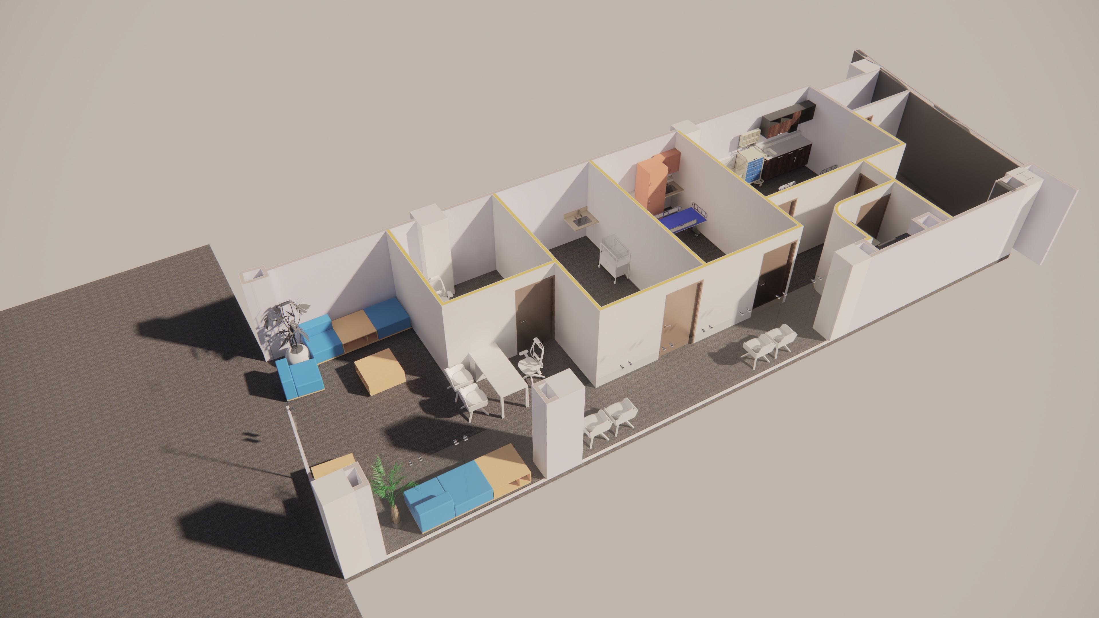Oficina pequeña: Un área destinada al personal administrativo para llevar a cabo tareas como programación de citas, registro de pacientes y gestión de documentos.