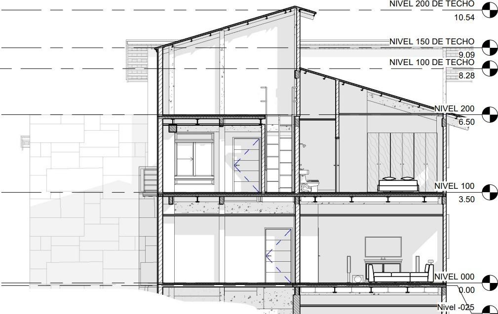 Semi-sótano (-100): Incluye una habitación con baño, un bar, lavande- ría, área de juegos, sala de cine, depósito y terraza.