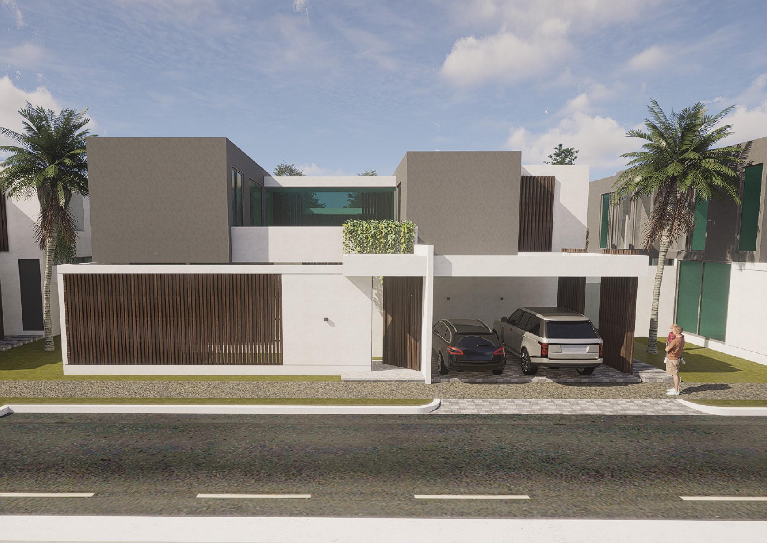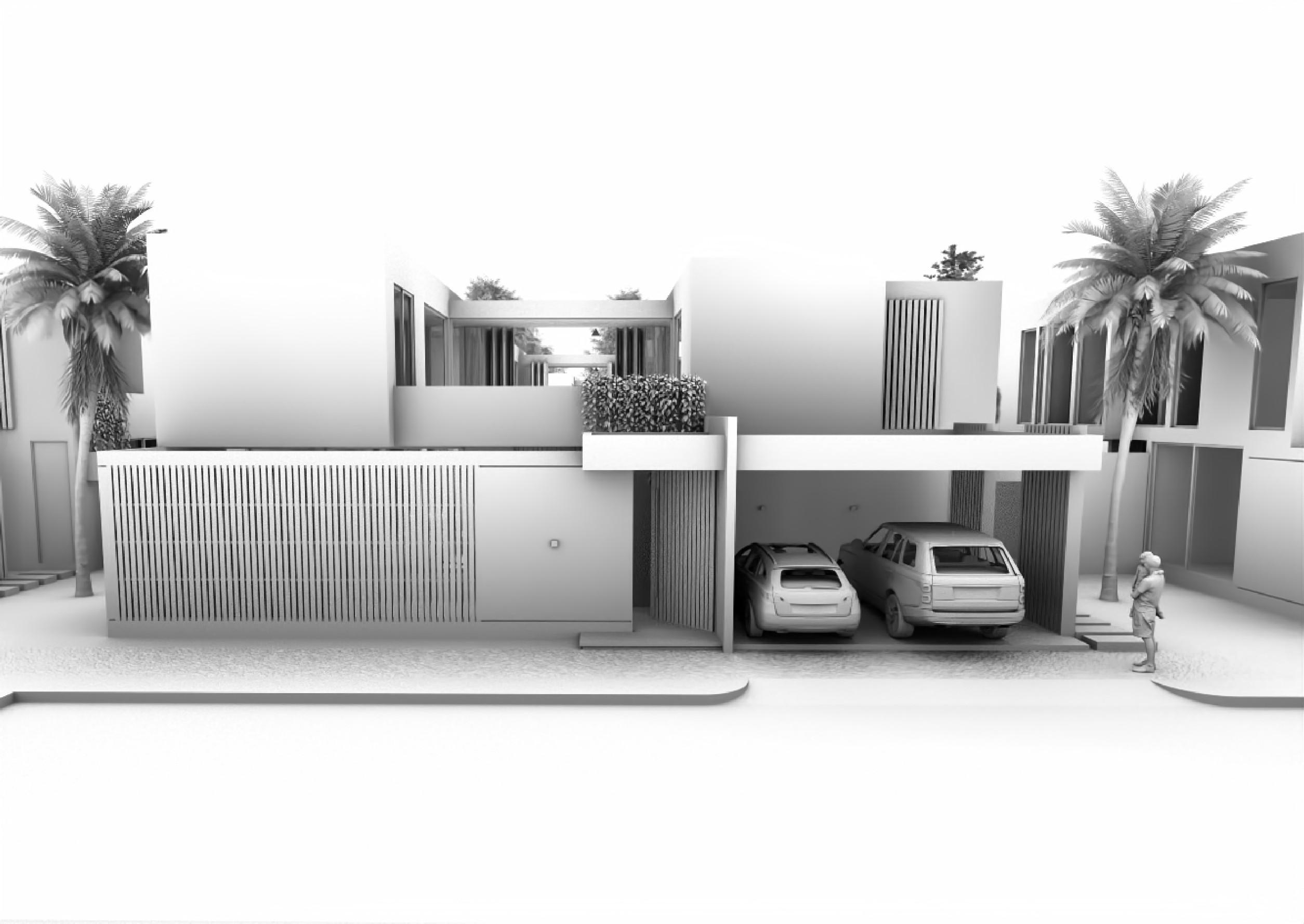• Implantación en L: Dos volúmenes de igual altura se desfasan sobre la esquina, creando una arista abierta que permi- te una continuidad visual y física con las áreas verdes adyacentes.