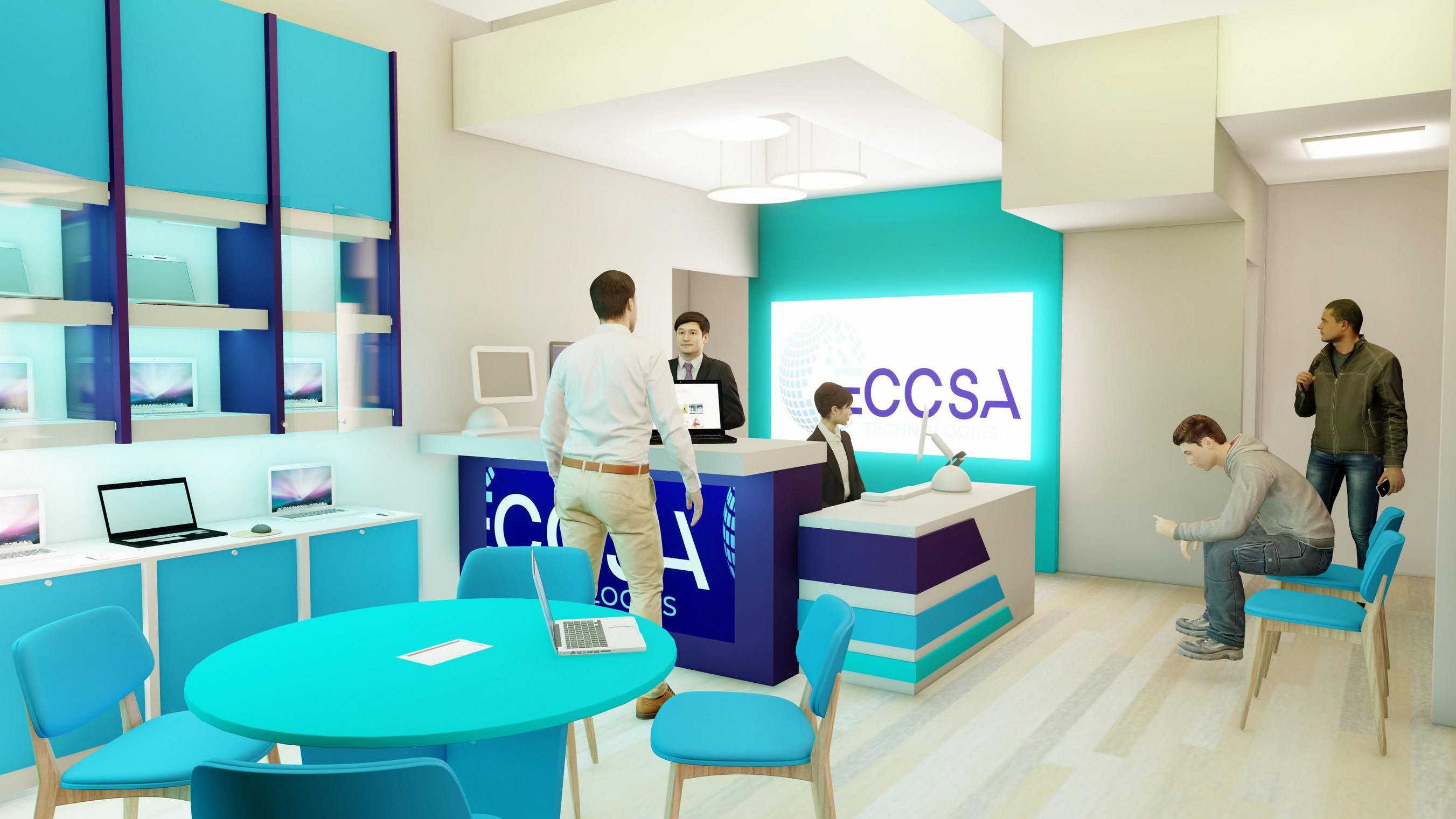 El proyecto del Showroom de ECCSA representa un espacio innovador y centrado en el cliente, destinado a ofrecer una experiencia completa en el mundo de la tecnología informática. Situado estratégicamente en la Vía Santa Elena, Parque Lefevre, este showroom de 60 m^2 es el resultado de un esfuerzo por brindar soluciones integra- les en venta y atención al cliente, así como soporte técnico especializado para una amplia gama de marcas de computadoras.