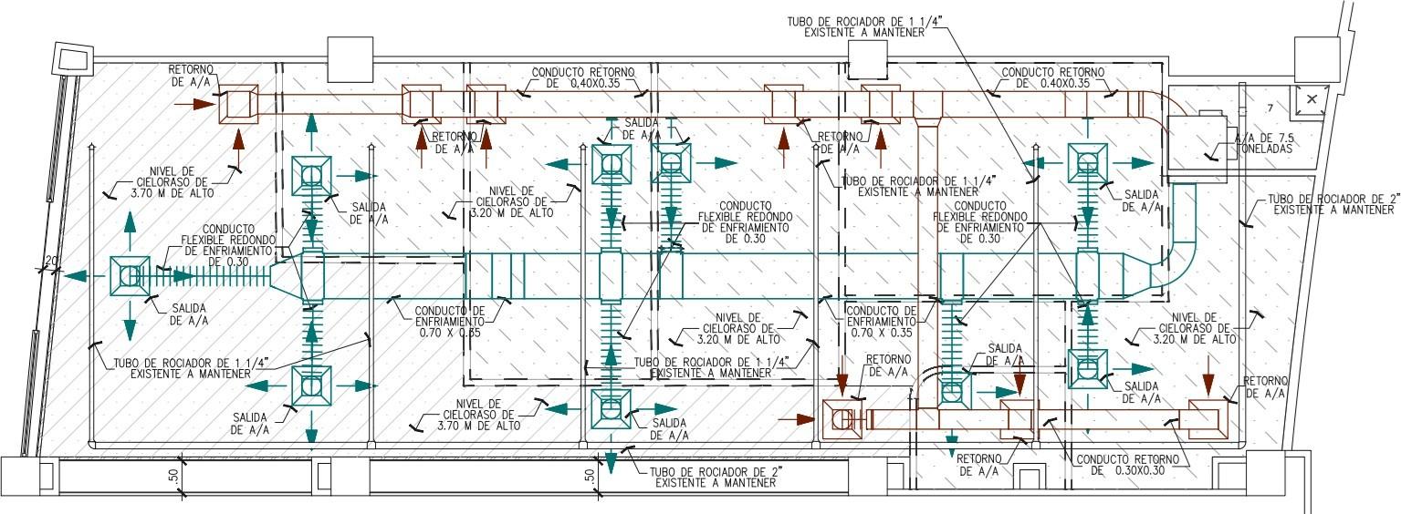PLANTA DE CIELORASO, DUCTERIA Y ROCIADORES