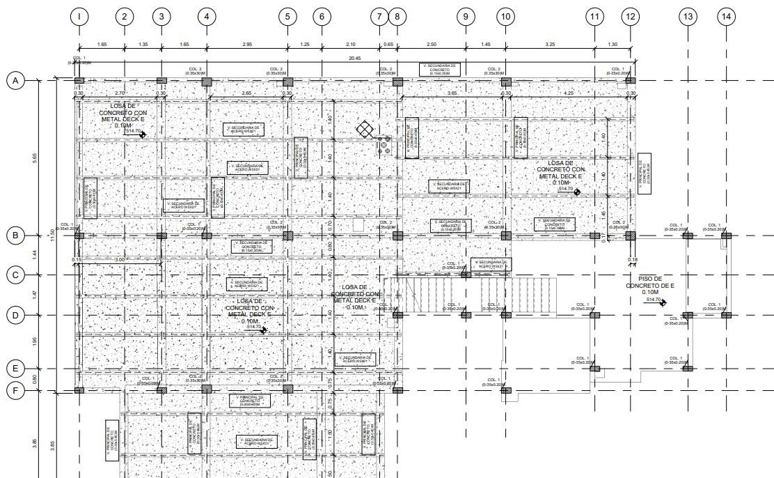 En cuanto al sistema estructural, se emplea un diseño que incluye zapatas de concreto con muro de contención co- rrido para la cimentación, pilares estructurales, vigas prin- cipales y secundarias de concreto, losa de Metaldec y vi- guetas WF para las losas, así como un techo de carriolas con tejas metálicas.