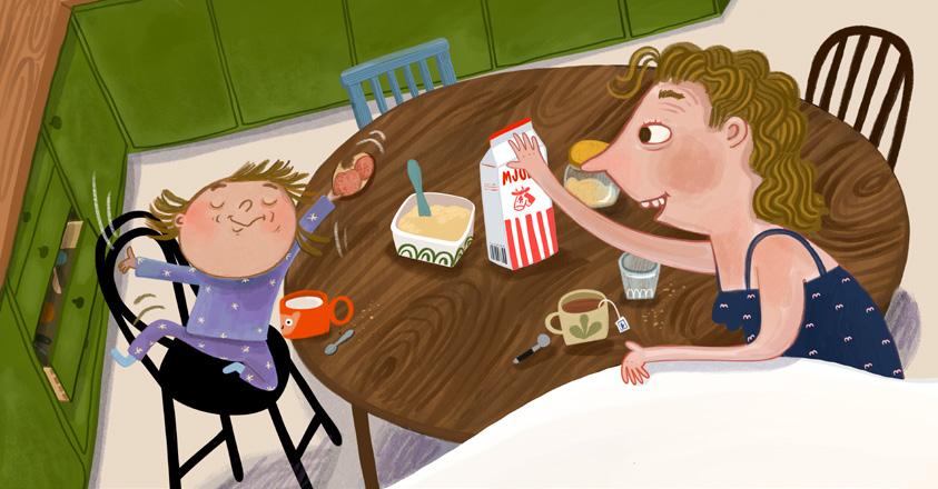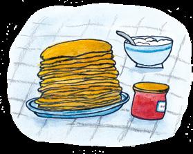 0–3 ÅR | Nino har gjort pannkakor. Med sylt och grädde. Men fastän han har ätit sig mätt så har han en hel trave kvar. Vad ska han göra med dem?