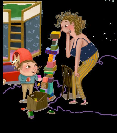Fantasifullt och nyfiket barn möter pedantisk mammas oro inför alla små faror som – kanske – lurar i hemmet. Men till sist faller mamma på eget grepp och allt blir ett enda stort fniss.