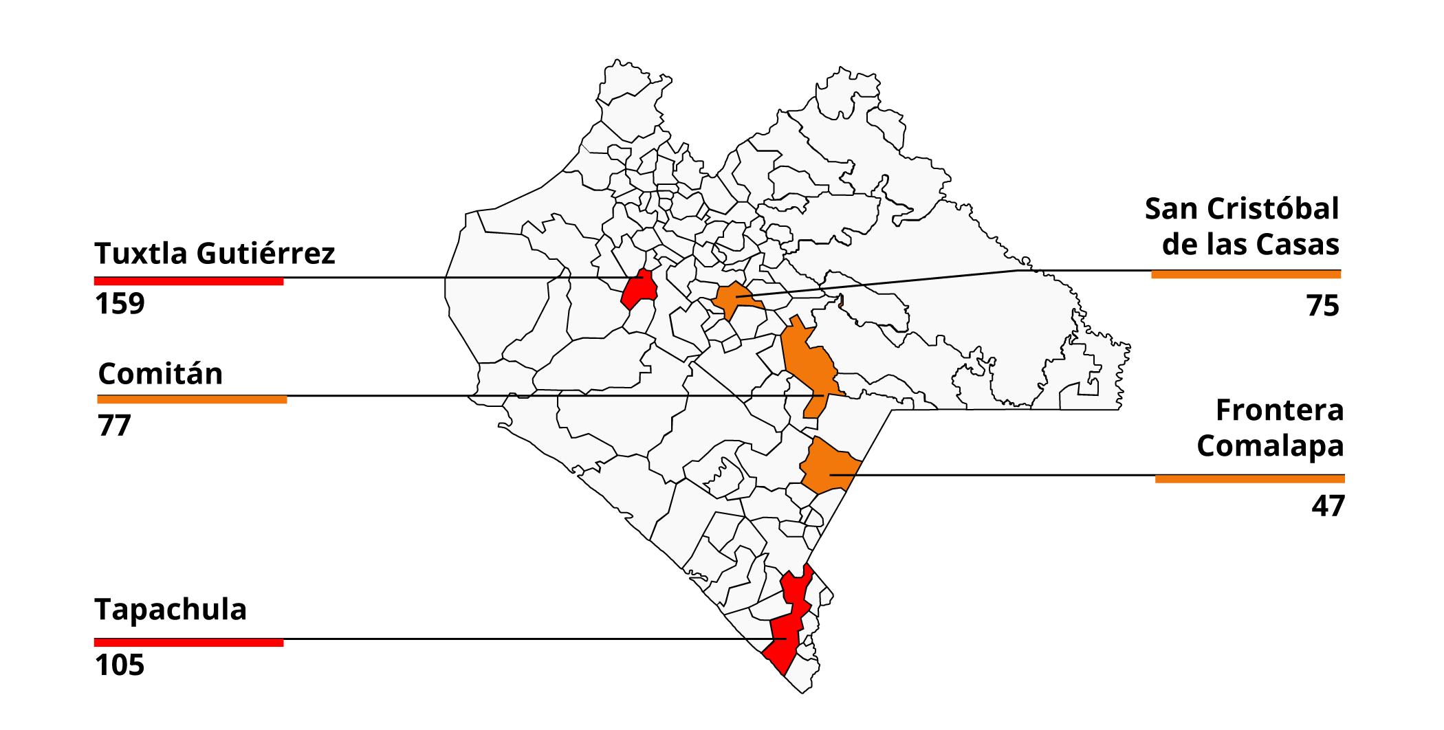En paralelo, Tapachula emerge como el epicentro de esta crisis, con 166 desapariciones reportadas entre un total de mil 119 casos en todo el estado de Chiapas. Otros municipios costeros como Tuxtla Gutiérrez, Frontera Comalapa, y