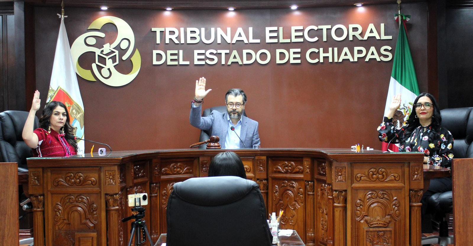 Tuxtla Gutiérrez, Chiapas, 27 de junio de 2024.- En sesión pública, el Pleno del Tribunal Electoral del Estado de Chiapas (TEECH) determinó anular la elección para miembros de Ayuntamiento en el municipio de Capitán Luis Ángel Vidal, y, en consecuencia, se declaró la invalidez de la elección y el no otorgamiento de la constancia de mayoría y validez a la candidata postulada por el Partido Verde Ecologista de México (PVEM).