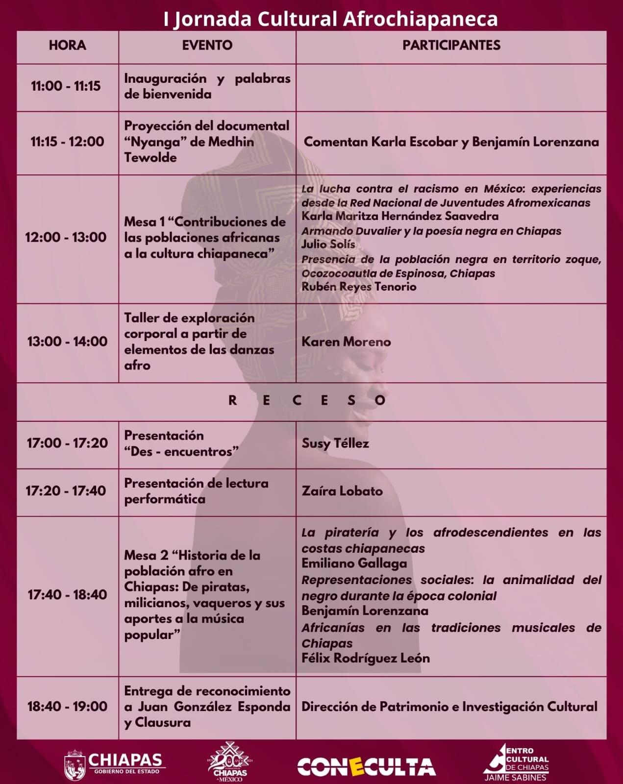 tigación Cultural. La jornada es un evento significativo para reflexionar sobre el impacto de la herencia africana en la cultura chiapaneca.