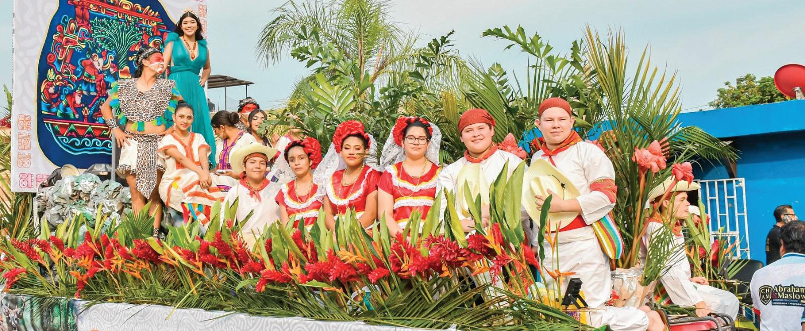 En el desfile -que este año lleva por tema México Mágico-, participan 22 carros alegóricos, las bandas musicales “Latina” de la escuela secundaria del ejido Felipe Carrillo