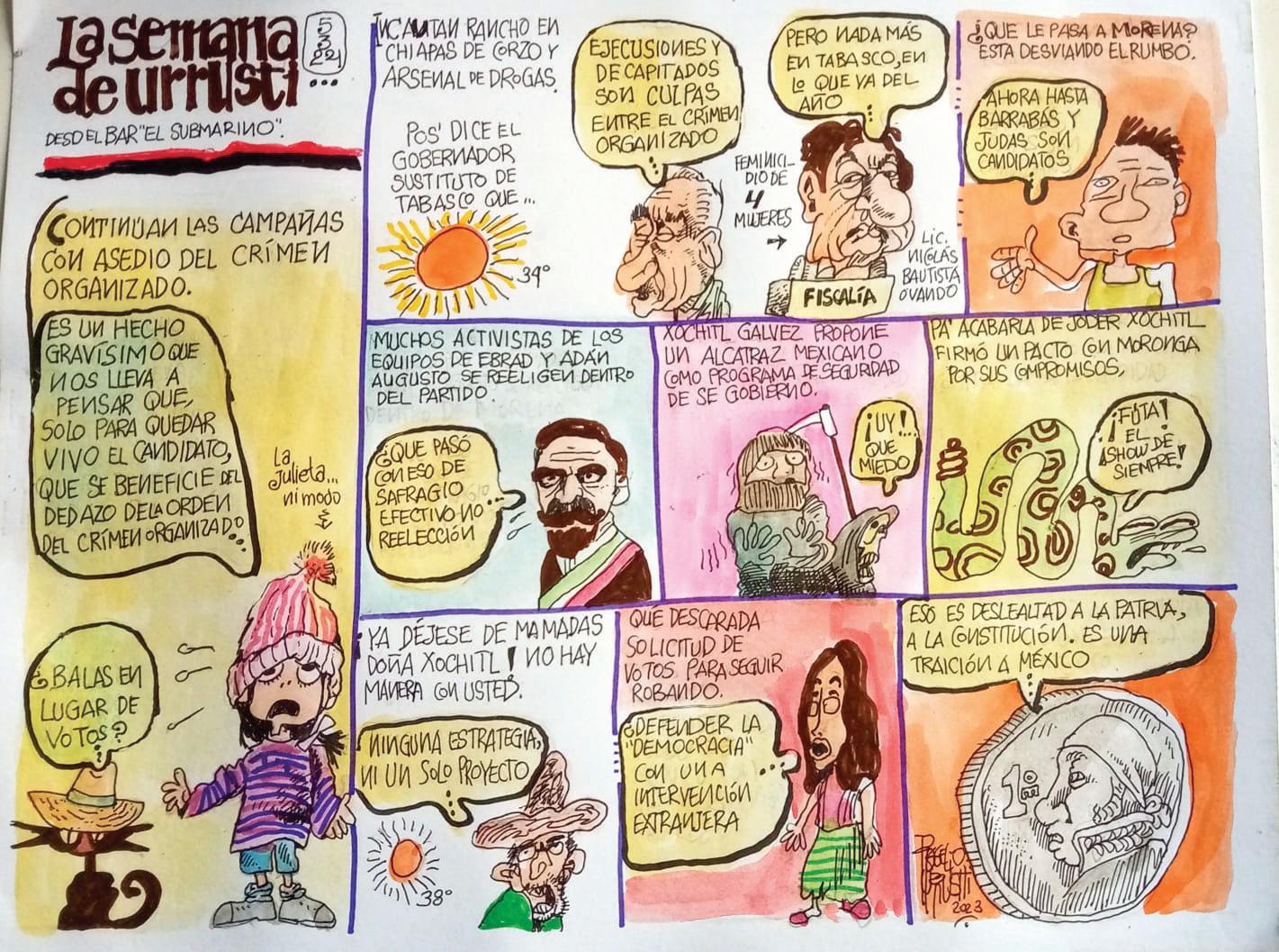 JORGE: Insisto, la violencia se intensifica y extiende en el país; todo hace sospechar que es un plan preparado para que no haya elecciones o para que el crimen organizado asuma las funciones de autoridad electoral. Organismos internacionales y nacionales y líderes de opinión se lo han hecho ver al mesías, y contesta que es una estratagema de sus adversarios para hacerlo “quedar mal”. De veras, qué inconciencia o qué descaro. Como dicen en mi pueblo, ve la tempestad y no se hinca.