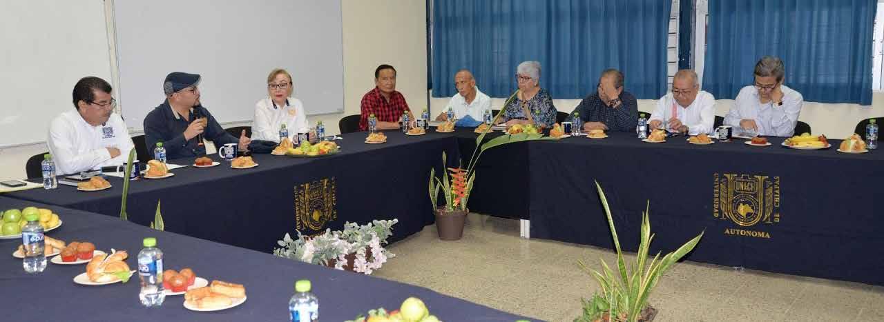 Tapachula, Chis., 10 MAR.-En el marco de los 50 Años de la Universidad Autónoma de Chiapas, la Facultad de Ciencias Químicas del Campus IV, realizó un conversatorio sobre la Historia de la Facultad, en el que participaron fundadores, exdirectores y docentes, en las instalaciones de la institución.