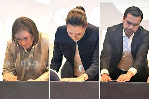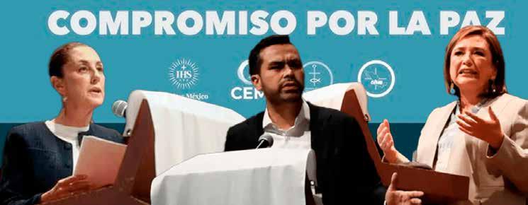 Los candidatos presidenciales Xóchitl Gálvez, Jorge Álvarez Máynez y Claudia Sheinbaum unieron fuerzas al suscribir el Compromiso por la Paz, respaldado por la Iglesia y compuesto por 117 propuestas destinadas a combatir la violencia en México. Sin embargo, a pesar de las firmas unificadoras, surgieron divergencias notables, especialmente en la visión de Sheinbaum sobre la "militarización" del país.