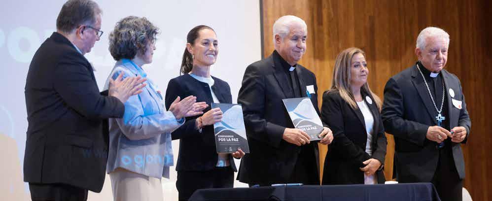 Durante la firma del “Compromiso Nacional por la Paz“, estuvieron presentes Monseñor Ramón Castro Castro, secretario de la Conferencia del Episcopado Mexicano; Luis Gerardo Moro Madrid, provincial de la Compañía de Jesús en México; Juana Ángeles Zárate Celedón, presidenta de la Conferencia de Superiores Mayores de Religiosos y Religiosas de México; y Denisse Arana Escobar, secretaria Ejecutiva de la Dimensión Episcopal para Laicos, así como Jorge Atilano González Candia, director ejecutivo del Diálogo Nacional por la Paz y Ana Paula Hernández, coordinadora del Diálogo Nacional por la Paz.