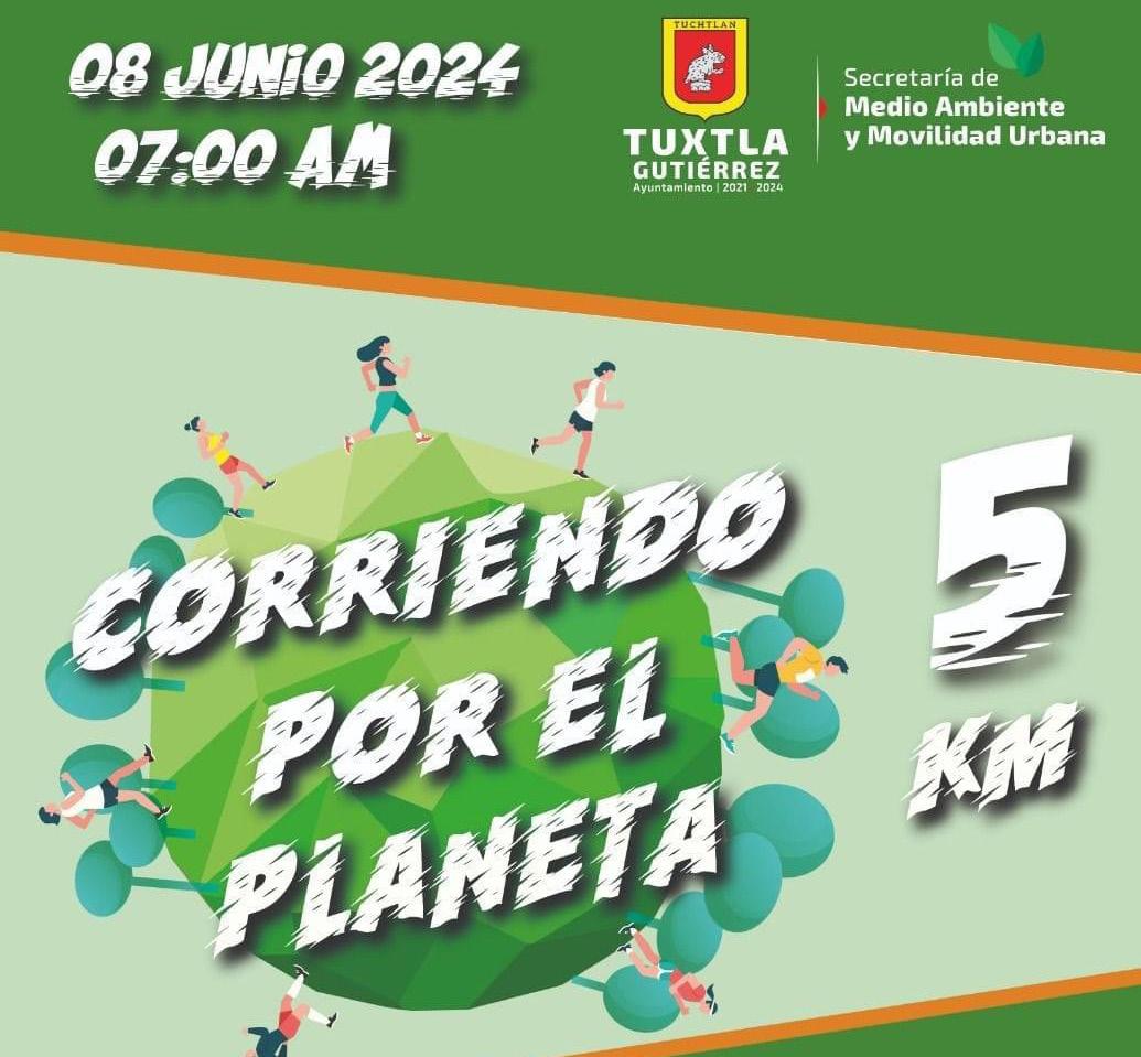 La secretaría de Medio Ambiente y Movilidad Urbana y el Instituto del Deporte Tuxtleco (INDETUX) del Ayuntamiento de Tuxtla Gutiérrez, anunciaron este viernes la carrera pedestre "Corriendo por el Planeta" próxima a realizarse el 8 de junio.
