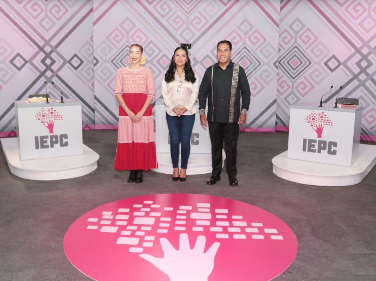 Participan el candidato Oscar Eduardo Ramírez Aguilar, de la coalición "Sigamos haciendo historia en Chiapas", Karla Irasema Muñoz Balanzar, del Partido Movimiento Ciudadano y Olga Luz Espinosa Morales, de la coalición "Fuerza y corazón por Chiapas".