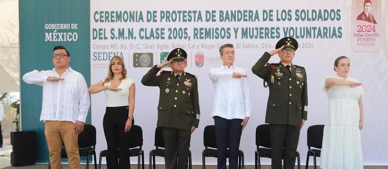 Junto a autoridades militares y representantes de los poderes Legislativo y Judicial, el gobernador Rutilio Escandón atestiguó la Toma de Protesta de Bandera de los Soldados del Servicio Militar Nacional Clase 2005, Remisos y Mujeres Voluntarias, en el marco de la conmemoración del 162 aniversario de la Batalla de Puebla.