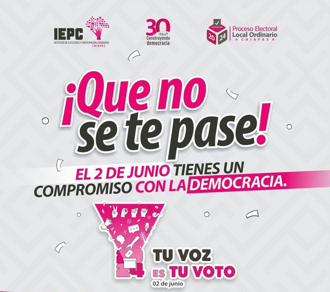 Este domingo 2 de junio, lo que está en juego no es menor. Por el bien de la democracia chiapaneca, esperemos que imperen las condiciones de seguridad, orden y paz, para escribir una nueva página en la historia de una entidad federativa que este mismo año, suma 200 de haberse federado a México.