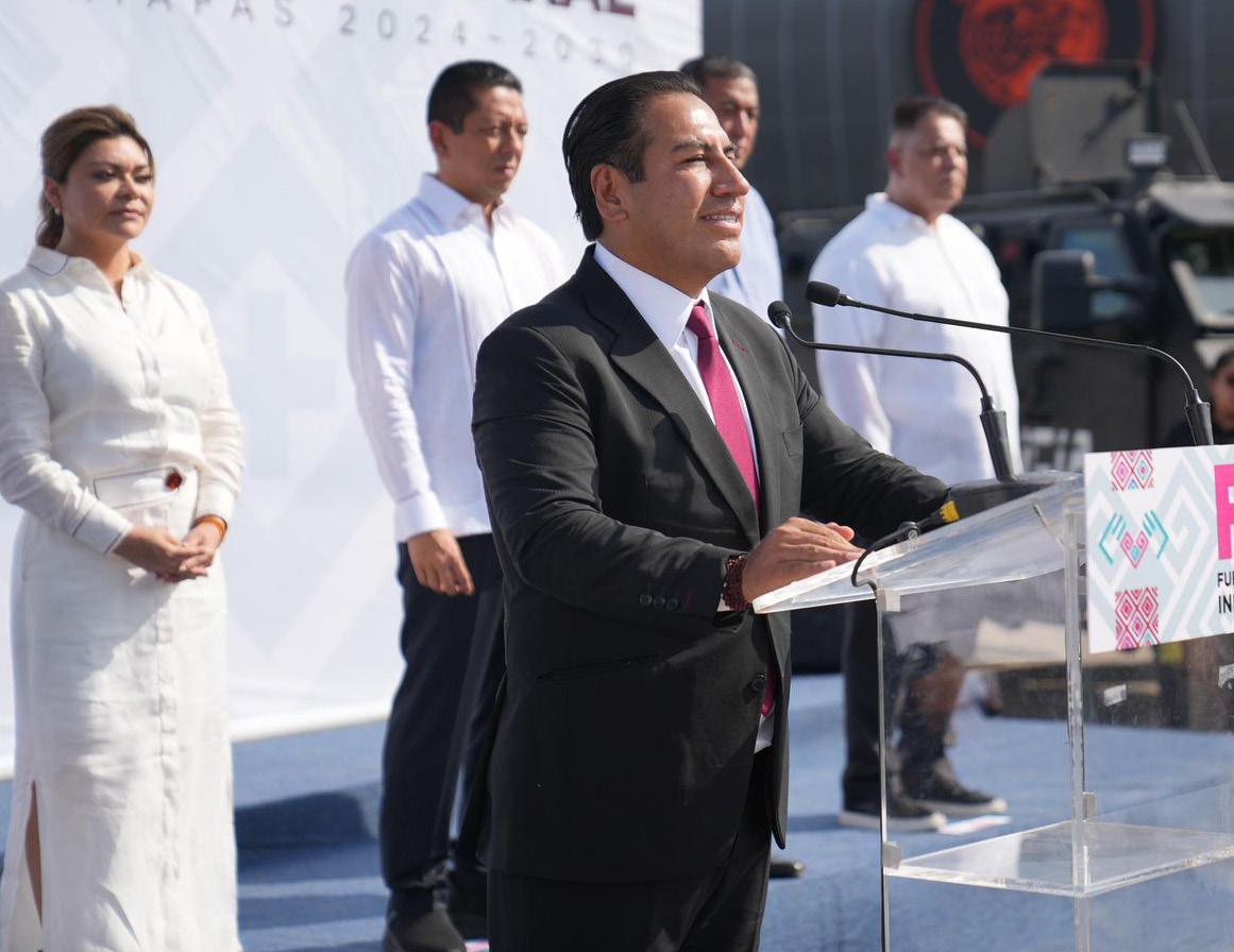 El gobernador enfatizó que con la Fuerza de Reacción Inmediata Pakal, quienes son los protectores del pueblo de Chiapas, se inicia la Nueva ERA, la era de la paz social y de la confianza, que conlleva el compromiso de consolidar una policía de proximidad.